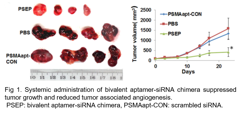 Our invention utilizes bivalent aptamer-dual siRNA chimeras, targeting both EGFR and survivin in prostate cancer. The bivalent siRNA chimeras increased in vivo circulation half-life and reduced renal clearance in vivo. In both in vitro and in vivo studies, bivalent aptamer specifically binds to prostate-specific membrane antigen and degraded EGFR and survivin, leading to cell death and reduced angiogenesis in prostate cancer. As a result, the bivalent siRNA system improves the specificity and sensitivity of the aptamer-siRNA system in treating prostate cancer.